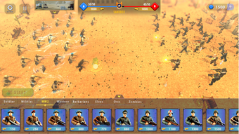 Epic Battle Sim: World of Warは、あなたを第二次世界大戦の時代に連れ戻す、無料のストラテジーゲームです。ここでは、あなたが率いる軍隊が枢軸国に対して勝利を収めるために戦います。しかしこの戦争では、人間だけでなく兵士や傭兵と共に戦うゾンビたちとも戦わなければなりません。このゲームは、あなたのリーダーシップと戦略力を使ってこの壮大な戦争に勝利することを挑戦します。